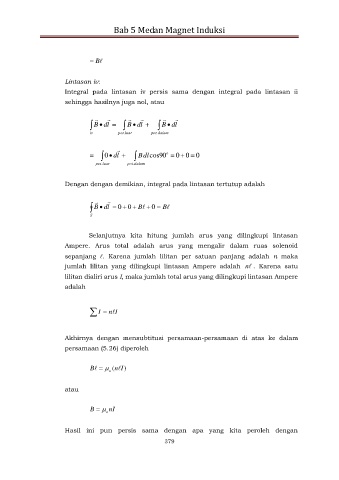 lilitan dialiri arus I, maka jumlah total arus yang dilingkupi lintasan Ampere