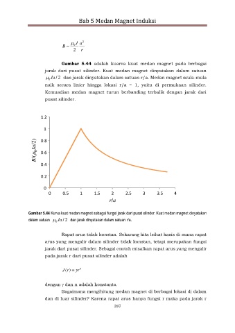 Gambar 5.44 Kurva kuat medan magnet sebagai fungsi jarak dari pusat silinder. Kuat medan magnet dinyatakan