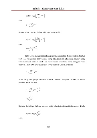 Dengan demikian, hukum ampere pada lokasi di dalam silinder dapat ditulis