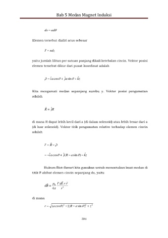 (di luar solenoid). Vektor titik pengamatan relative terhadap elemen cincin