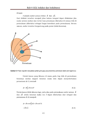 Gambar 6.1 Fluks magnetik menyatakan jumlah garis gaya yang menembus permukaan dalam arah tegak lurus