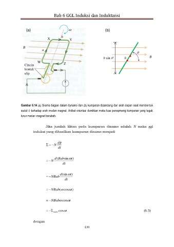 Gambar 6.14 (a) Skema bagian dalam dynamo dan (b) kumparan dipandang dari arah depan saat membentuk