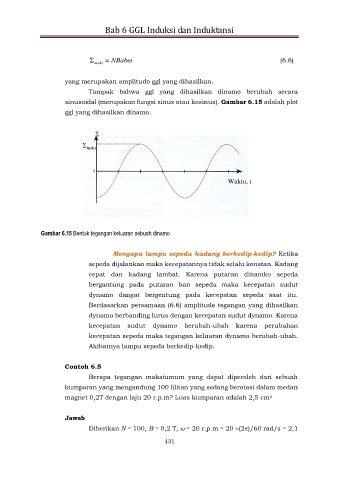Berdasarkan persamaan (6.6) amplitude tegangan yang dihasilkan
