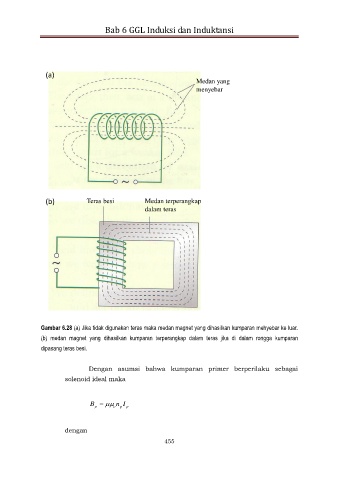 Gambar 6.28 (a) Jika tidak digunakan teras maka medan magnet yang dihasilkan kumparan mehyebar ke luar.