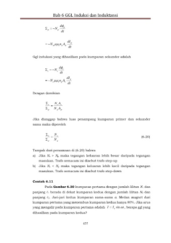 Pada Gambar 6.30 kumparan pertama dengan jumlah lilitan N1 dan