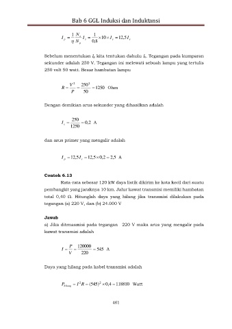 sekunder adalah 250 V. Tegangan ini melewati sebuah lampu yang tertulis