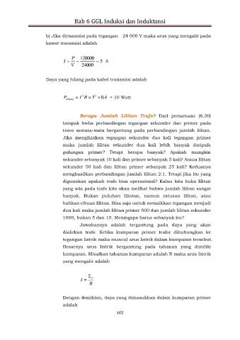 dua kali maka jumlah lilitan primer 500 dan jumlah lilitan sekunder