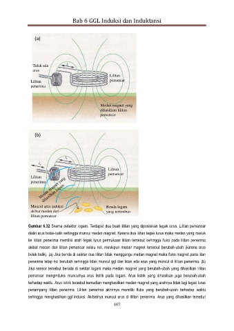 penerima tetap nol berubah sehingga tidak muncul ggl dan tidak ada arus yang muncul di lilitan penerima. (b)