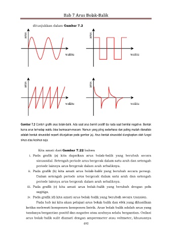 Gambar 7.2 Contoh grafik arus bolak-balik. Ada saat arus bernili positif da nada saat bernilai negative. Bentuk