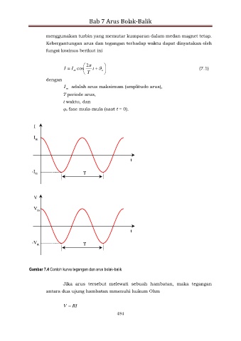 Gambar 7.4 Contoh kurva tegangan dan arus bolak-balik