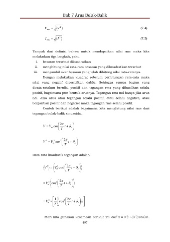 positif, bagaimana pun bentuk arusnya. Tegangan rms nol hanya jika arus