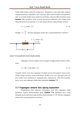 Gambar 7.6 Arus bolak-balik melewati sebuah hambatan