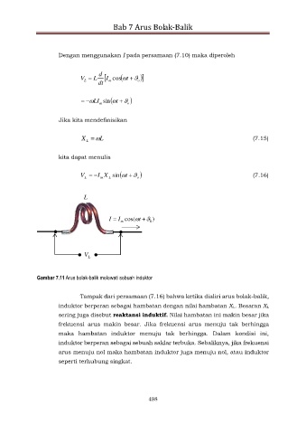 Tampak dari persamaan (7.16) bahwa ketika dialiri arus bolak-balik,