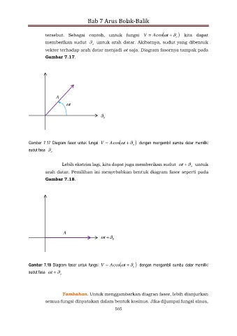 Gambar 7.18 Diagram fasor untuk fungsi V Acos t o dengan mengambil sumbu datar memiliki