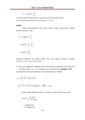 memiliki sudut t 6 / . Diagram fasor tampak pada Gambar 7.22