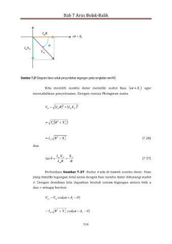 Gambar 7.27 Diagram fasor untuk penjumlahan tegangan pada rangkalan seri RC