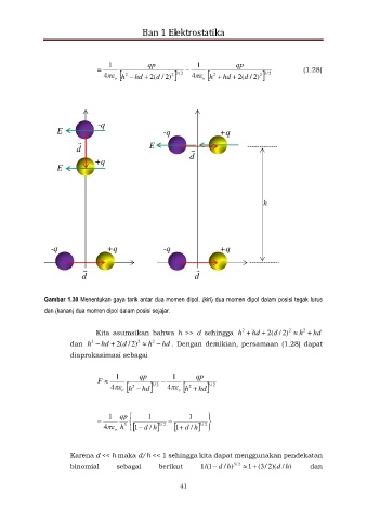 Gambar 1.30 Menentukan gaya tarik antar dua momen dipol. (kiri) dua momen dipol dalam posisi tegak lurus