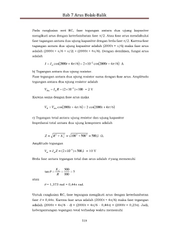 fase = 0,44. Karena fase arus adalah (2000t + 4/6) maka fase tegangan