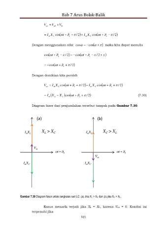 Gambar 7.30 Diagram fasor untuk rangkaian seri LC. (a) Jika XL > XC dan (b) jika XC > XL.