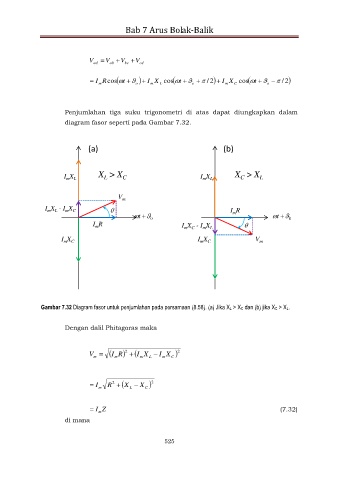 Gambar 7.32 Diagram fasor untuk penjumlahan pada persamaan (8.58). (a) Jika XL > XC dan (b) jika XC > XL.