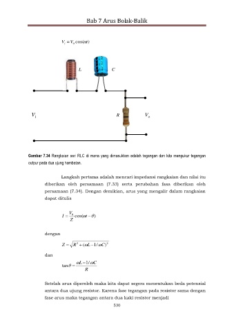 Gambar 7.34 Rangkaian seri RLC di mana yang dimasukkan adalah tegangan dan kita mengukur tegangan