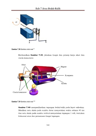 Berdasarkan Gambar 7.39, jelaskan fungsi dan prinsip kerja sikat dan