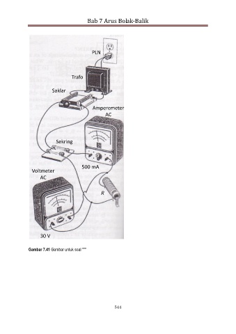 Bab 7 Arus Bolak-Balik PLN Trafo Saklar Amperemeter AC Sekring 500 mA Voltmeter AC R 30 V Gambar 7.41 Gambar untuk soal *** 544
