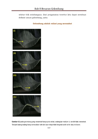 Gambar 8.2 pada gelombang yang merambat hanya pola osilasi, sedangkan medium itu sendiri tidak merambat.