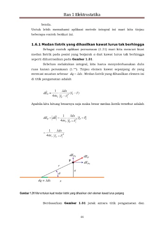 Gambar 1.31 Menentukan kuat medan listrik yang dihasilkan oleh elemen kawat lurus panjang
