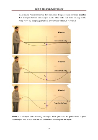 8.4 memperlihatkan simpangan suatu titik pada tali pada selang waktu