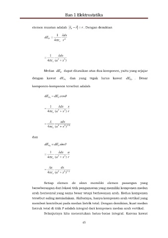 Medan dE dapat diuraikan atas dua komponen, yaitu yang sejajar