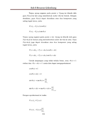 FT(x+dx,t) ke kanan yang memmbentuk sudut (x+dx) ke atas. Gaya