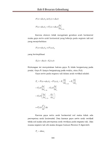Gaya netto pada segmen tali dalam arah vertikal adalah