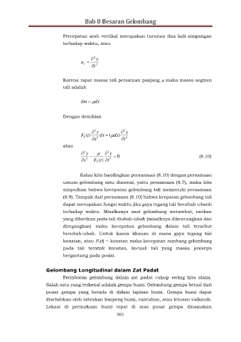 (8.9). Tampak dari persamaan (8.10) bahwa kcepatan gelombang tali