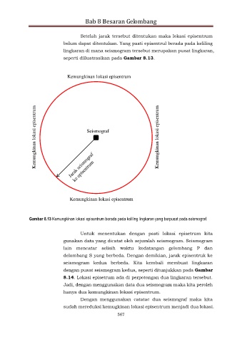 Gambar 8.13 Kemungkinan lokasi episentrum berada pada keliling lingkaran yang berpusat pada seismograf.