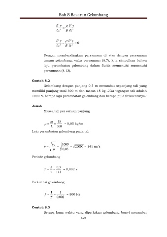 umum gelombang, yaitu persamaan (8.7), kita simpulkan bahwa