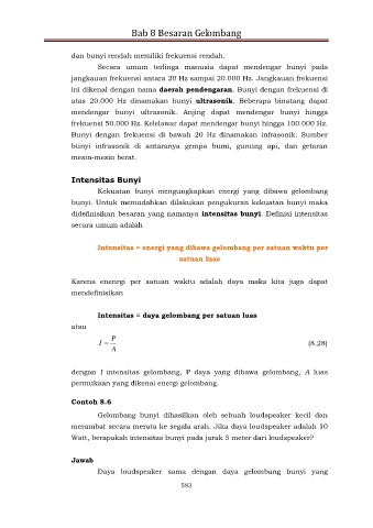 dengan I intensitas gelombang, P daya yang dibawa gelombang, A luas