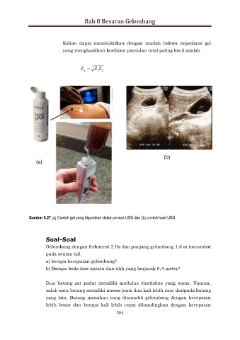 Gambar 8.27 (a) Contoh gel yang digunakan dalam proses USG dan (b) contoh hasil USG.