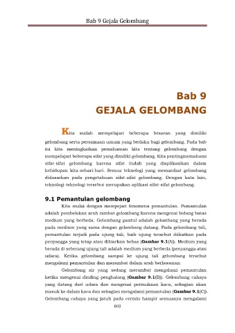 ketika mengenai dinding penghalang (Gambar 9.1(B)). Gelombang cahaya