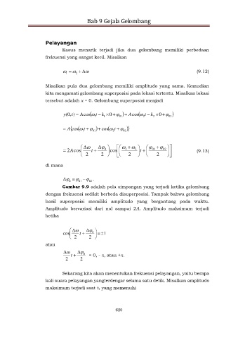 Gambar 9.9 adalah pola simpangan yang terjadi ketika gelombang