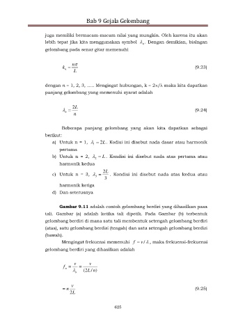 Gambar 9.11 adalah contoh gelombang berdiri yang dihasilkan pasa