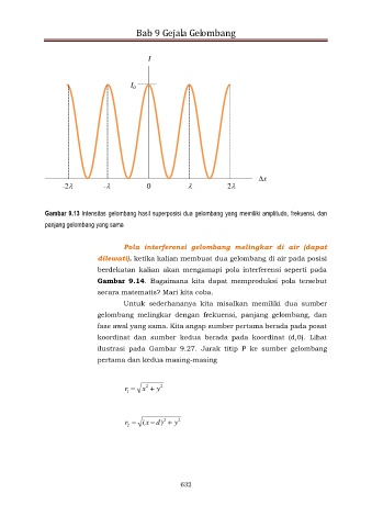 Gambar 9.13 Intensitas gelombang hasil superposisi dua gelombang yang memiliki amplitudo, frekuensi, dan