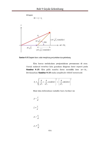 Gambar 9.15 Diagram fasor untuk menghitung penjumlahan dua gelombang