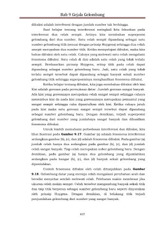 lihat ilustrasi pada Gambar 9.17. Gambar (a) adalah fenomena interferensi