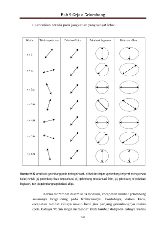 Gambar 9.22 Amplitudo gelombang pada berbagai waktu dilihat dari depan (gelombang bergerak menuju mata