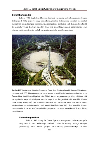Gambar 10.3 Teleskop radio di Arecibo Observatory, Peurto Rico. Teleskop ini memiliki diameter 308 meter dan