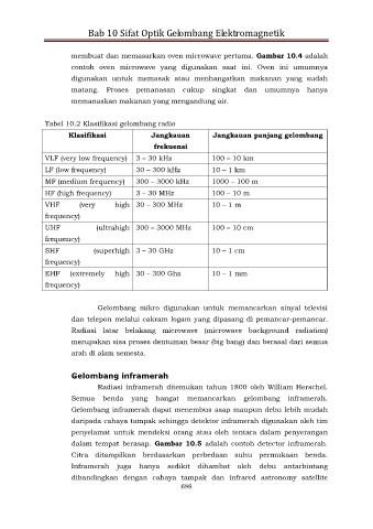 Tabel 10.2 Klasifikasi gelombang radio