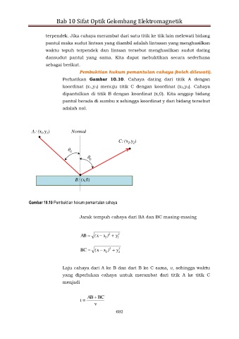Perhatikan Gambar 10.10. Cahaya dating dari titik A dengan