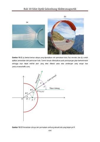 Gambar 10.12 (a) bentuk berkas cahaya yang dipantulkan oleh permukaan bola (Fact monster) dan (b) contoh