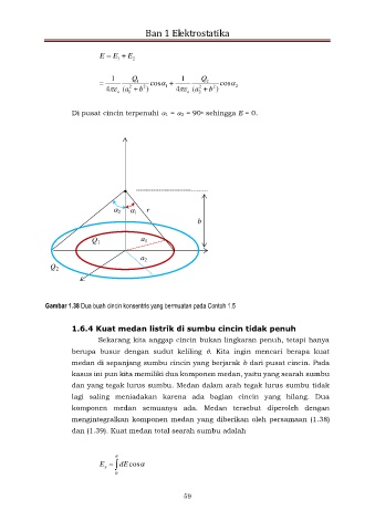 Di pusat cincin terpenuhi 1 = 2 = 90 sehingga E = 0.